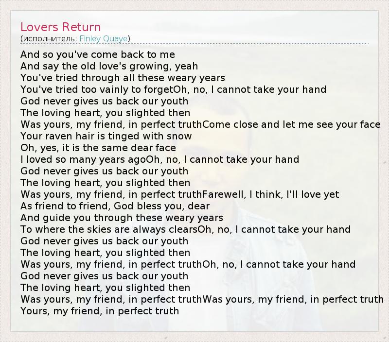 А как ты думаешь, о чем песня "Lovers Return" ?