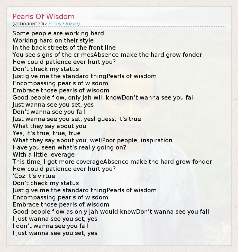 А как ты думаешь, о чем песня "Pearls Of Wisdom" ?