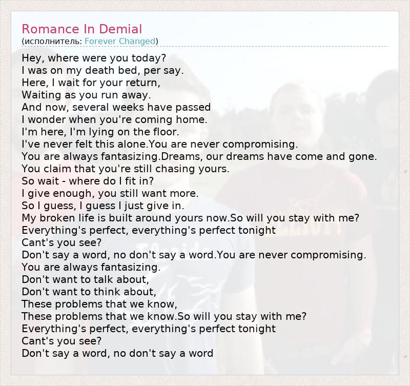 А как ты думаешь, о чем песня "Romance In Demial" ?