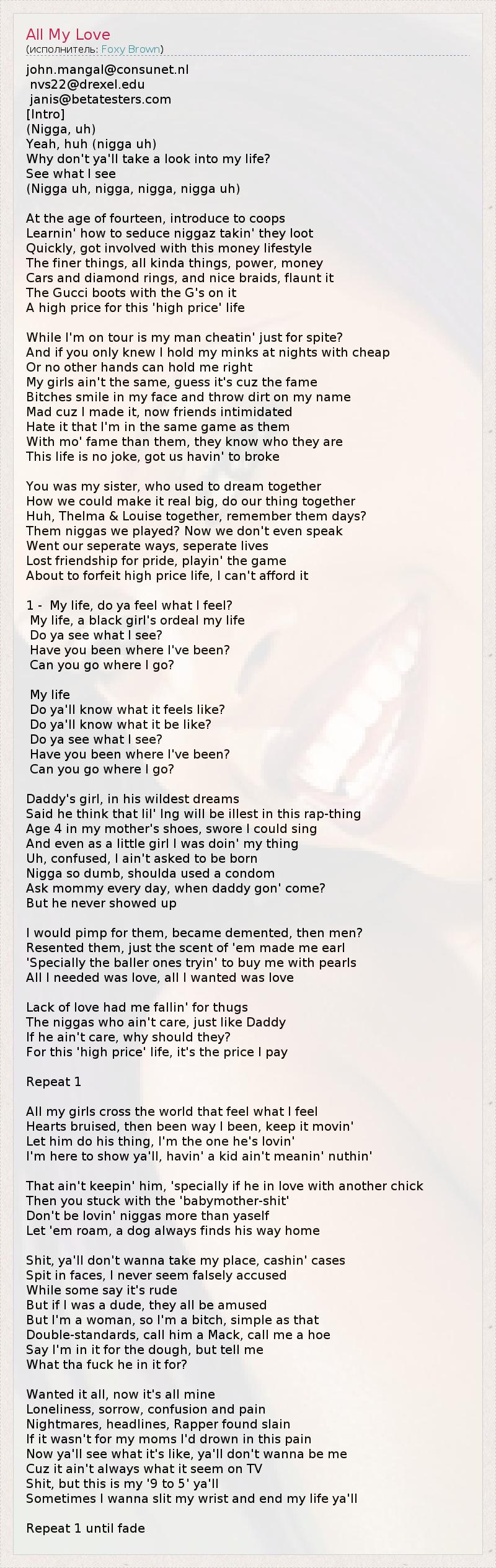 Это интересно:Foxy Brown — это не грациозная старушка Queen Latifah и даже не заводная тетка MC Lyte. Таким, как она, пронырливым особам палец в рот не суй. Новому поколению женского рэпа уже недостаточно, чтобы их уважали и считали реальными, несмотря на их пол; наоборот, они находят в женских слабостях свою выгоду и используют природную сексуальность в борьбе за слушателя, который, очевидно, скоро окончательно трансформируется... продолжение