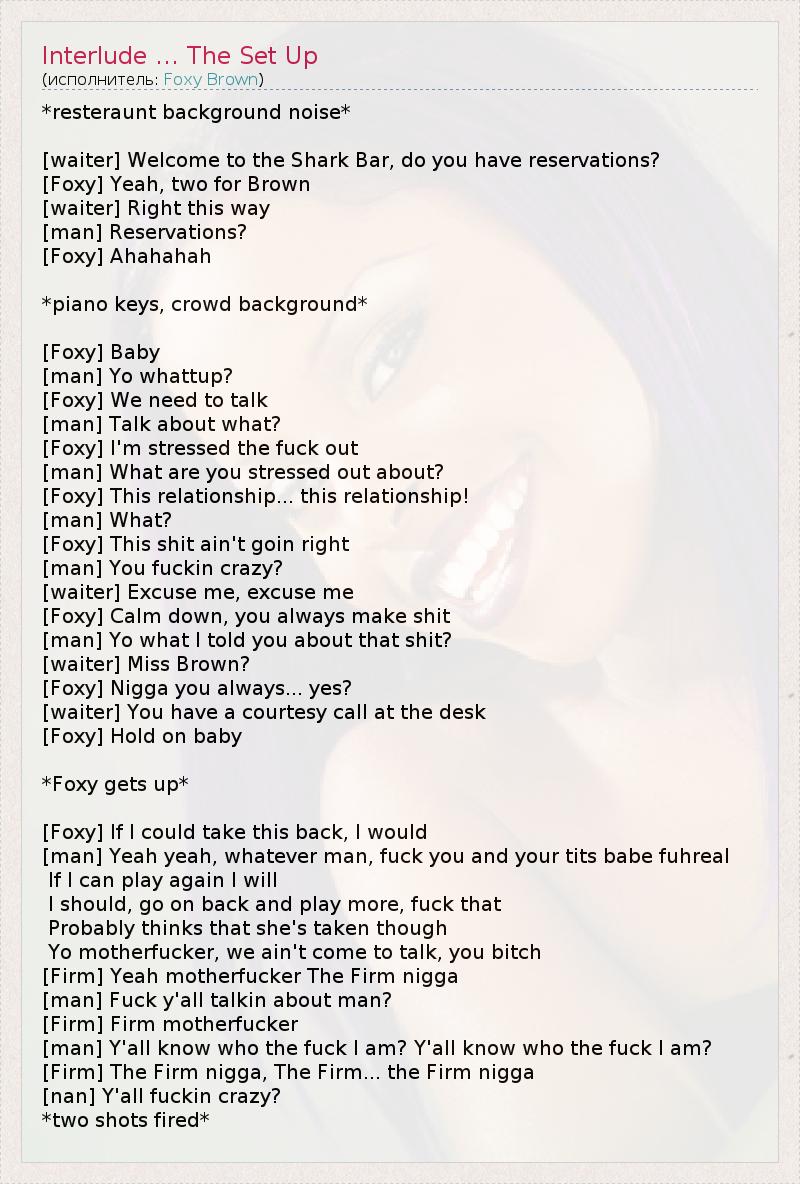 ГлавнаяИсполнителиFoxy BrownInterlude ... The Set Up