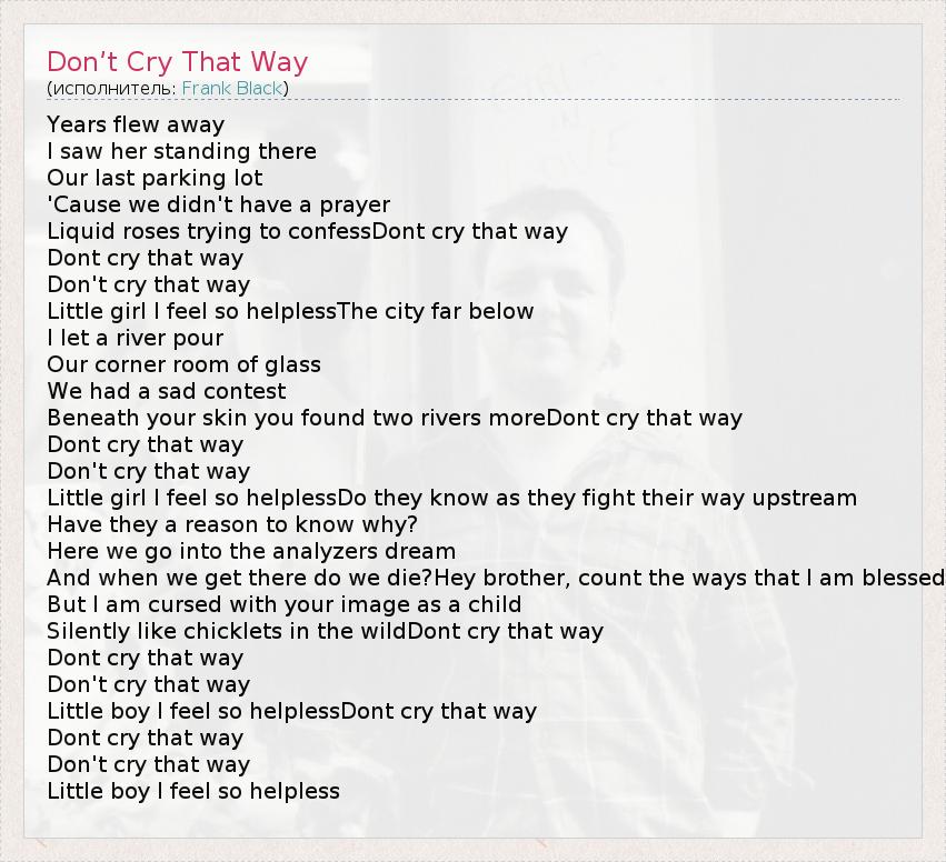 А как ты думаешь, о чем песня "Don’t Cry That Way" ?
