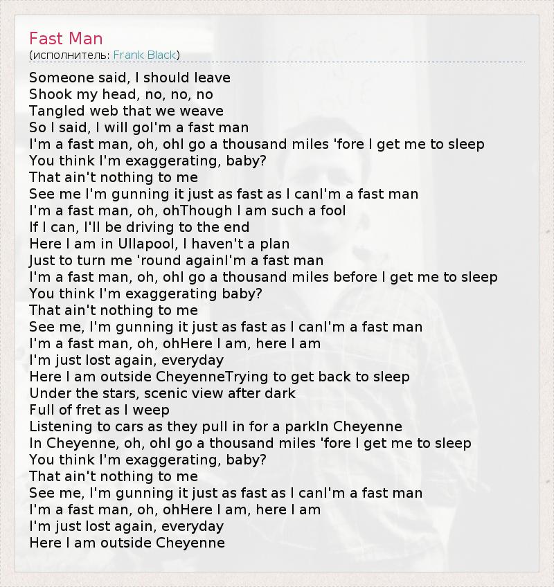 I'm a fast man, oh, ohI go a thousand miles before I get me to sleep