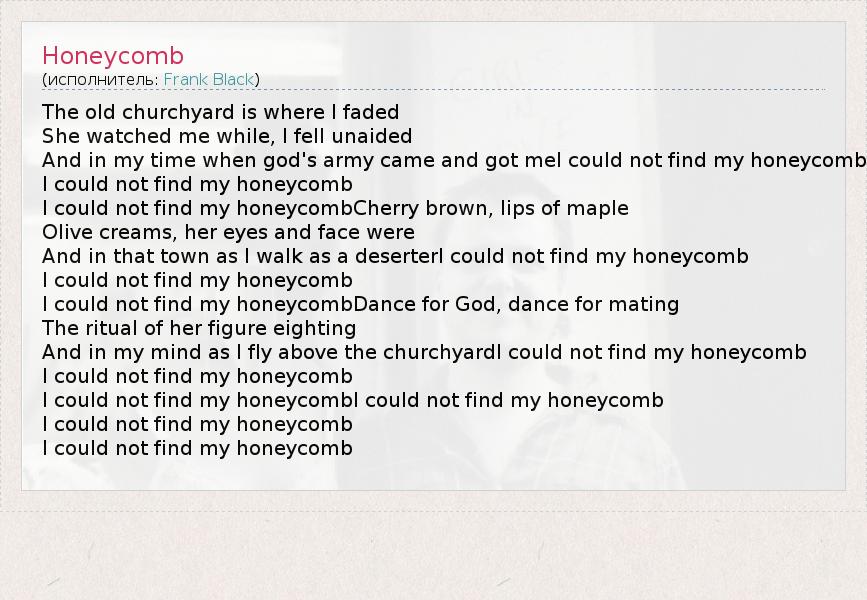 А как ты думаешь, о чем песня "Honeycomb" ?