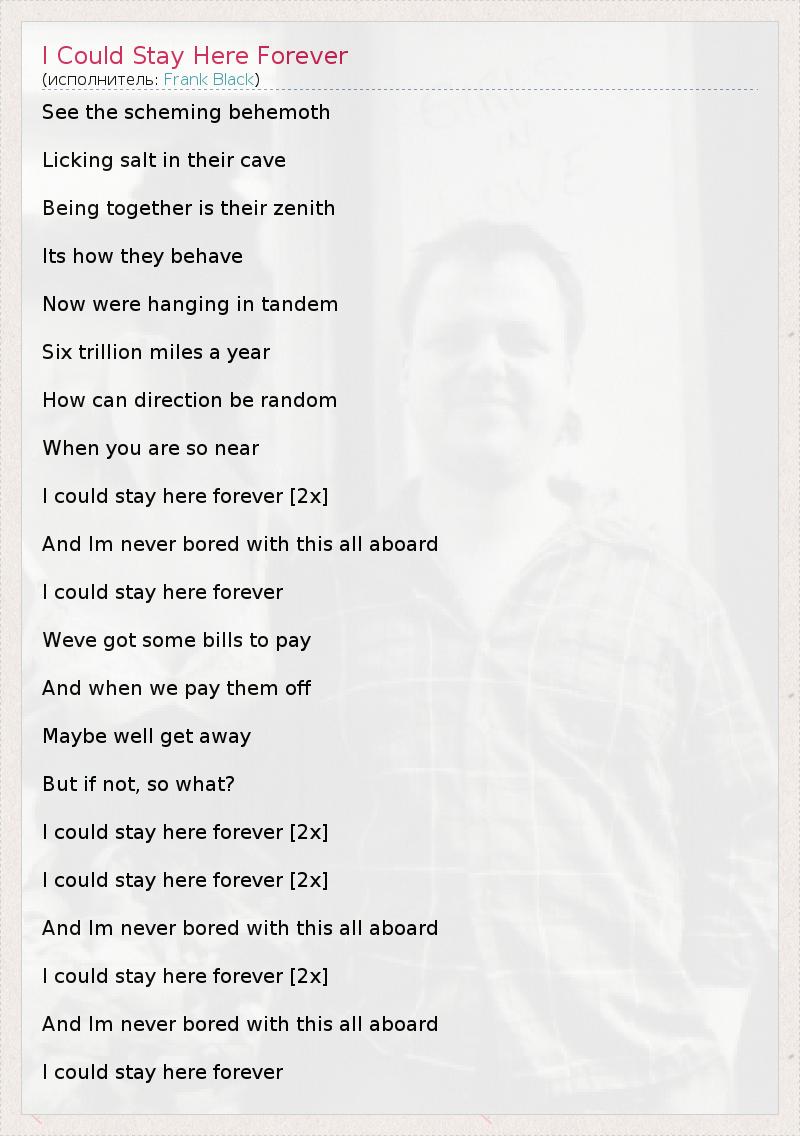 ГлавнаяИсполнителиFrank BlackI Could Stay Here Forever