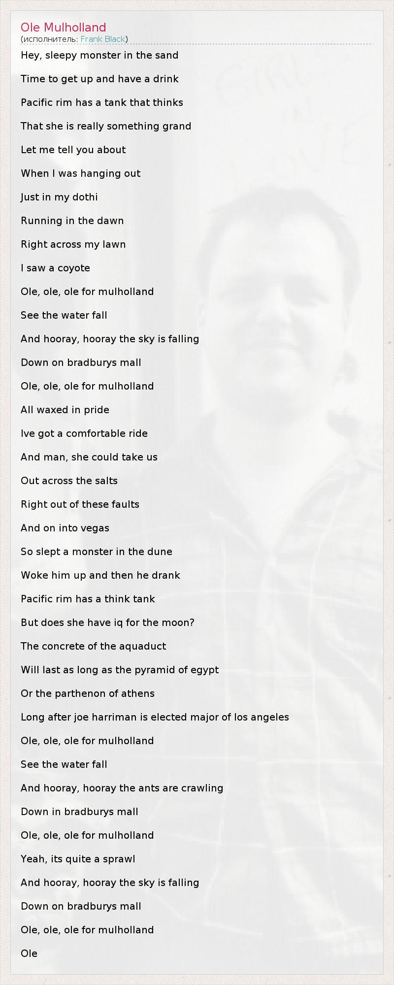 А как ты думаешь, о чем песня "Ole Mulholland" ?
