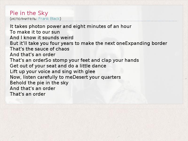 А как ты думаешь, о чем песня "Pie in the Sky" ?