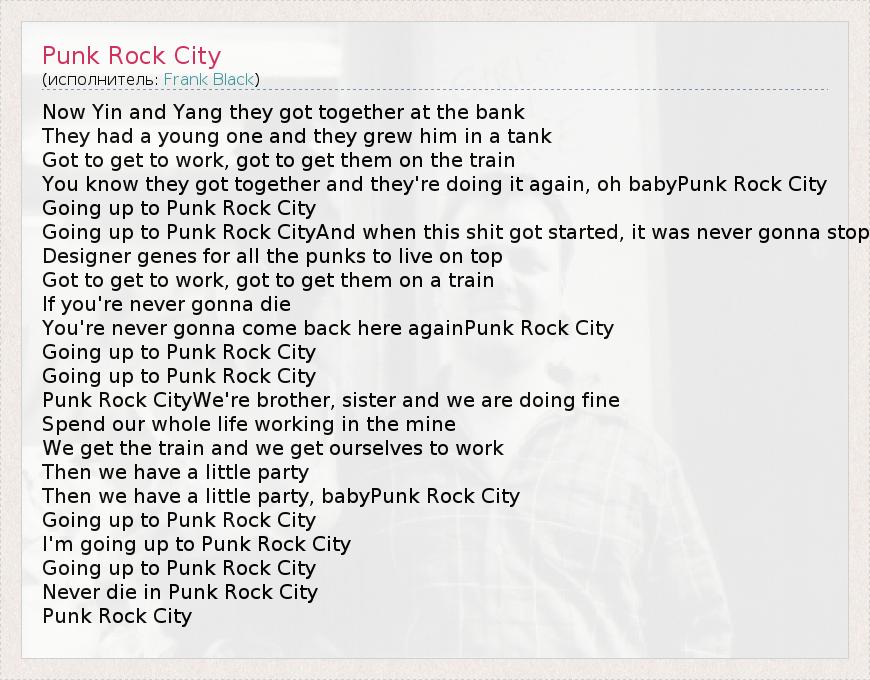 А как ты думаешь, о чем песня "Punk Rock City" ?
