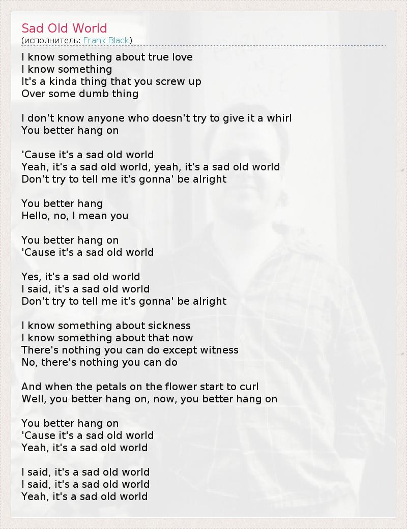 Yeah, it's a sad old world, yeah, it's a sad old world