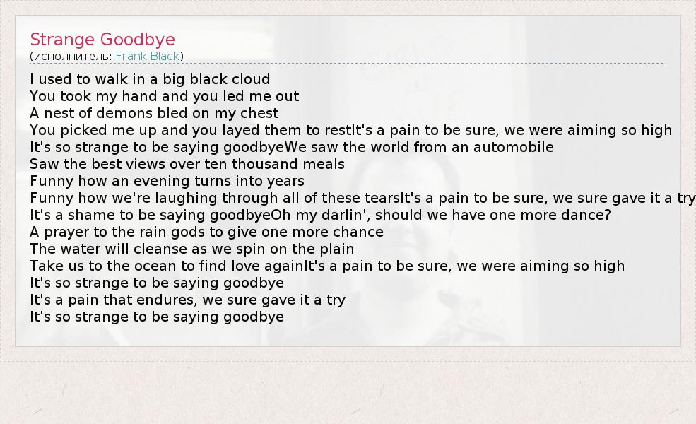А как ты думаешь, о чем песня "Strange Goodbye" ?