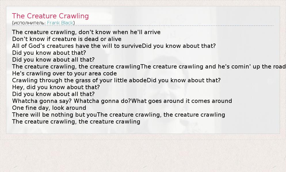 А как ты думаешь, о чем песня "The Creature Crawling" ?
