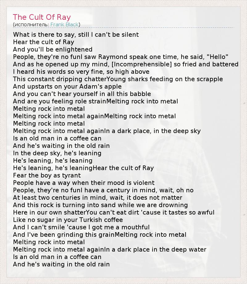 А как ты думаешь, о чем песня "The Cult Of Ray" ?