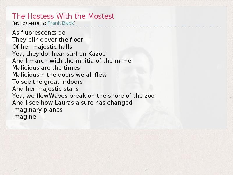 ГлавнаяИсполнителиFrank BlackThe Hostess With the Mostest