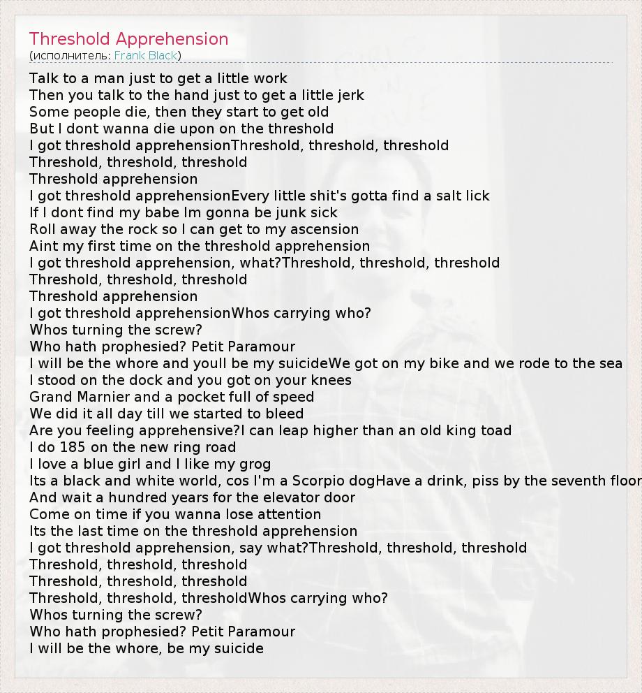 I got threshold apprehension, what?Threshold, threshold, threshold