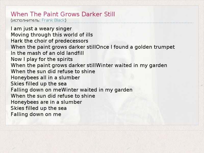 А как ты думаешь, о чем песня "When The Paint Grows Darker Still" ?