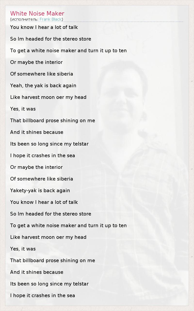 А как ты думаешь, о чем песня "White Noise Maker" ?