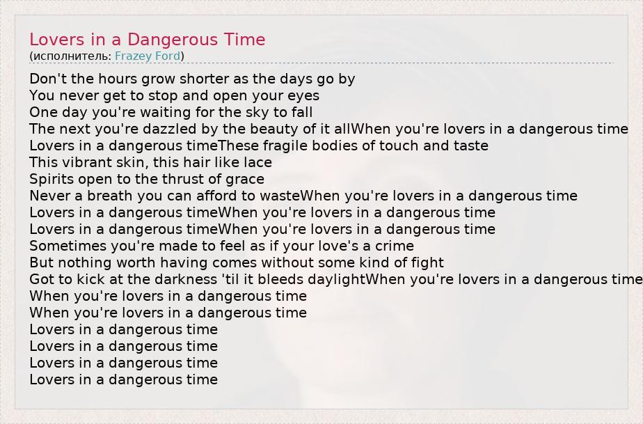 Lovers in a dangerous timeWhen you're lovers in a dangerous time