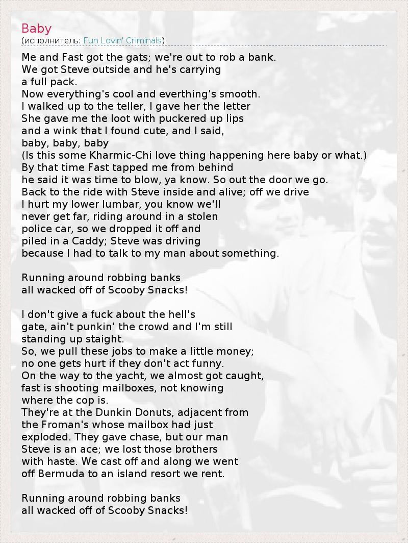 Это интересно:Эта американская команда, играющая фанк и хип-хоп, была сформирована в 1993 году в Нью-Йорке. Основателями группы стали вокалист и гитарист Хьюи Морган (08.08.1968), ударник Стив Боровини и Брайан Лейзер по прозвищу Fast, играющий на клавишных и гармошке. На музыку Fun Loving Criminals в равной мере повлияли такие направления, как фанк, хип-хоп, рок, блюз и музыка из культовых кинофильмов. В октябре 1995 группа... продолжение