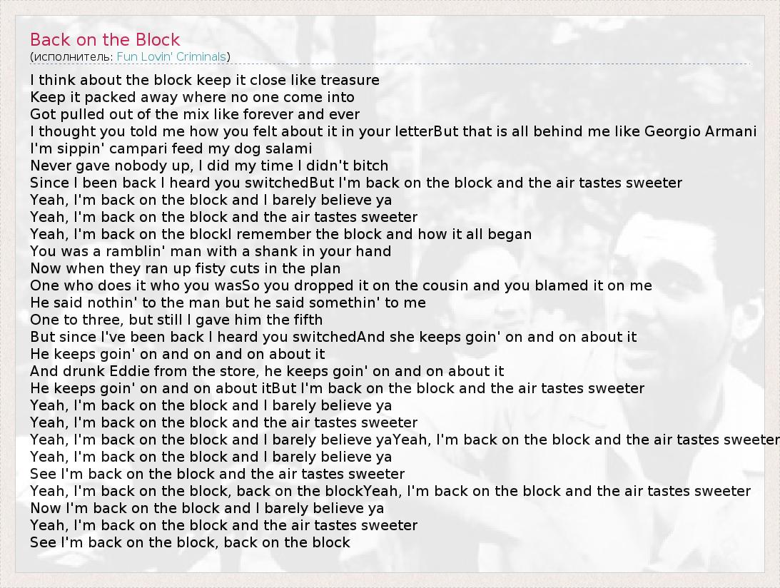 А как ты думаешь, о чем песня "Back on the Block" ?
