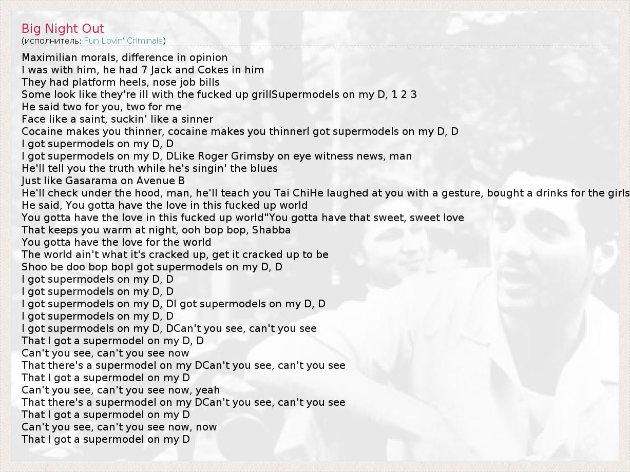 А как ты думаешь, о чем песня "Big Night Out" ?
