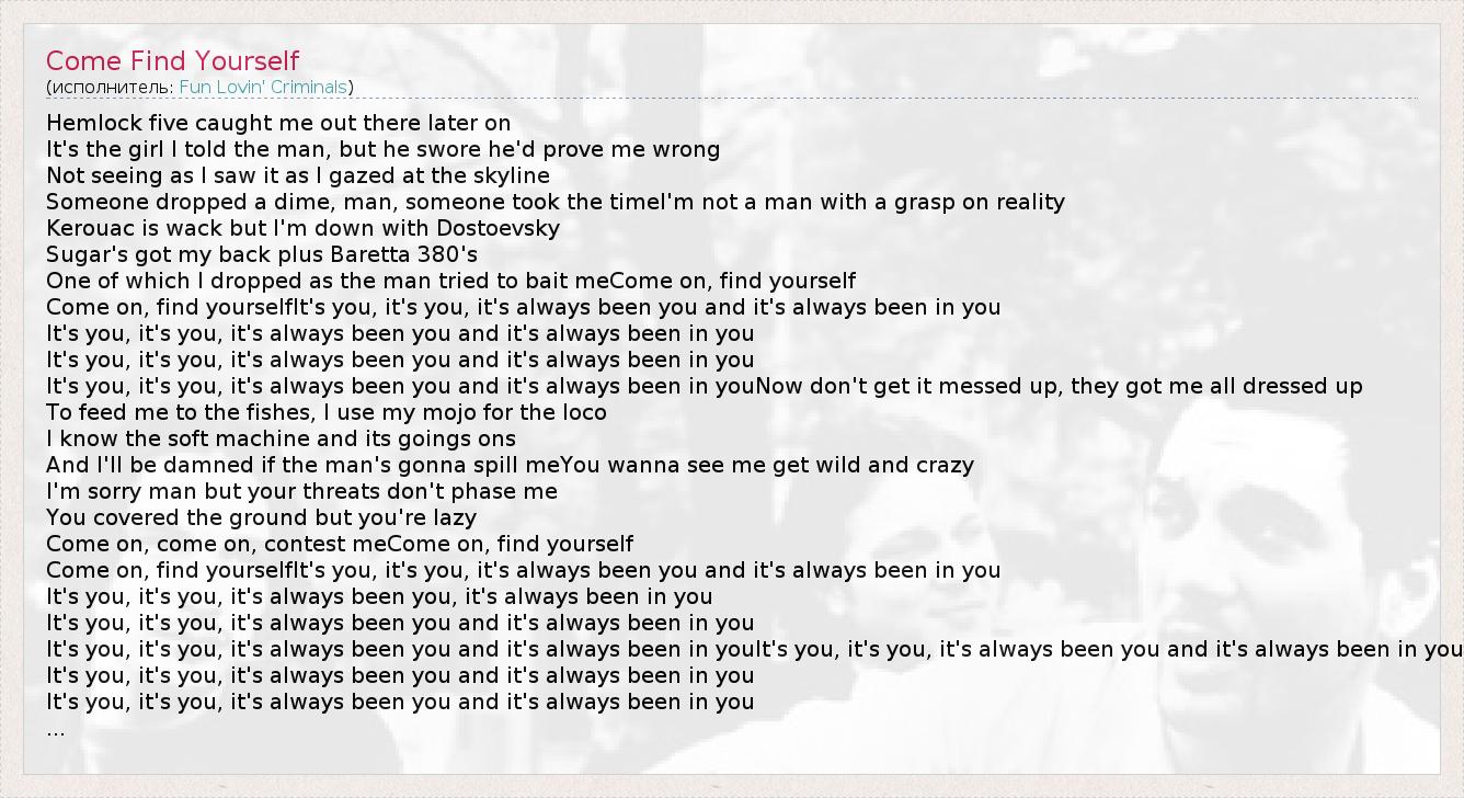 А как ты думаешь, о чем песня "Come Find Yourself" ?