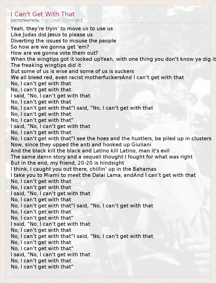 А как ты думаешь, о чем песня "I Can't Get With That" ?