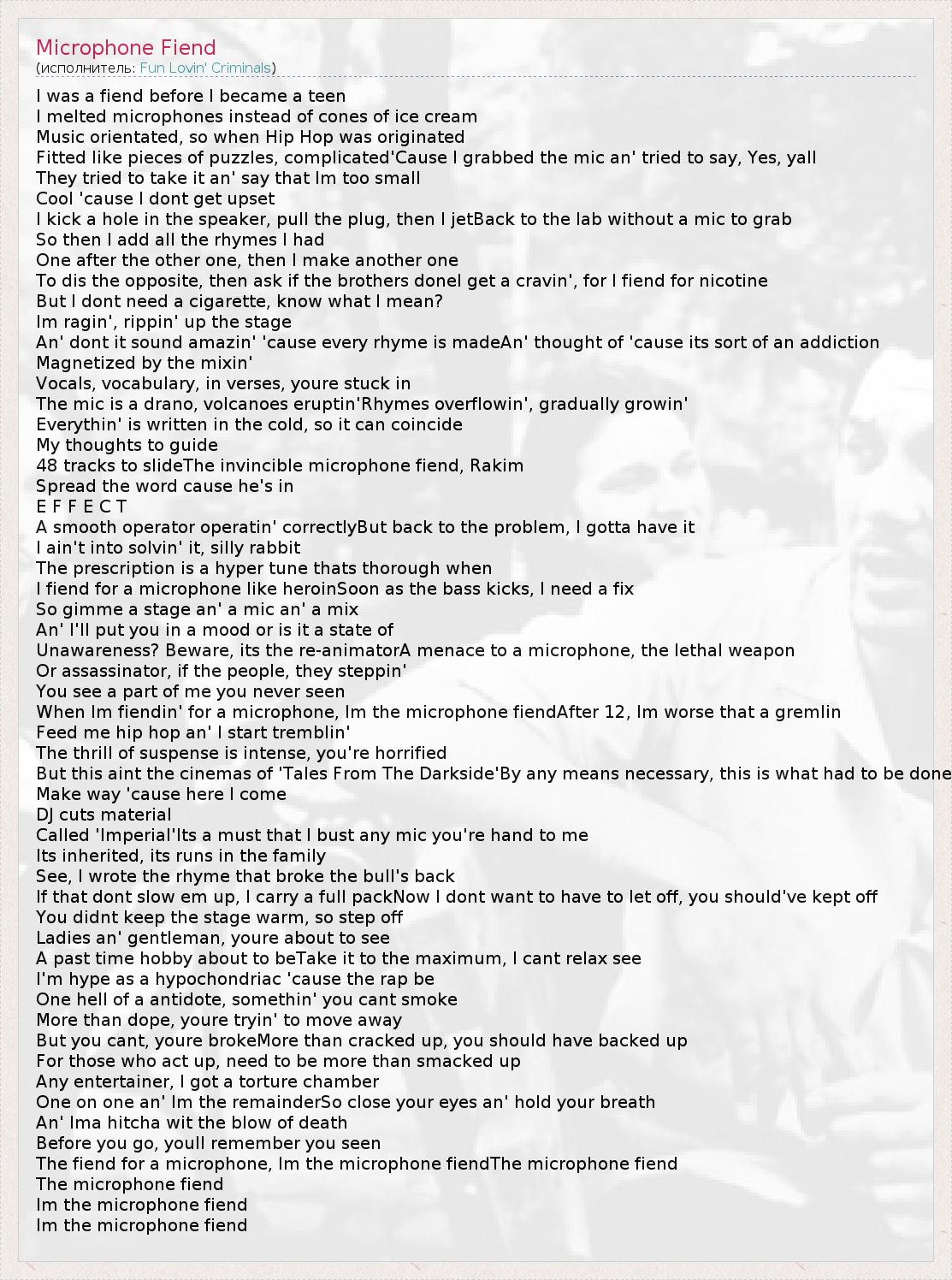 The fiend for a microphone, Im the microphone fiendThe microphone fiend
