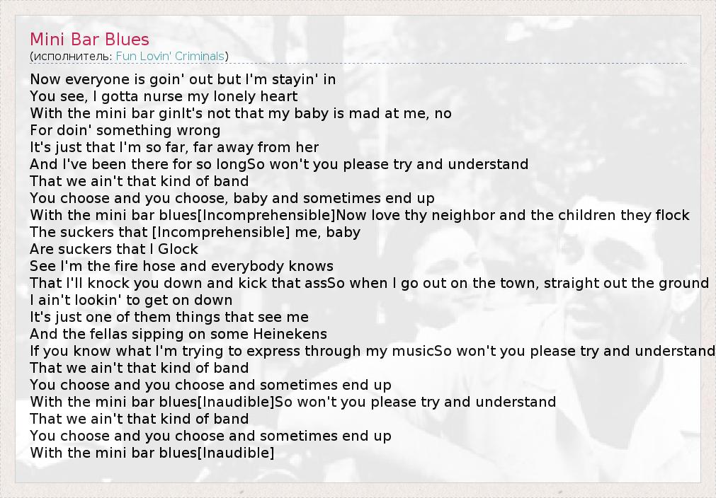 А как ты думаешь, о чем песня "Mini Bar Blues" ?