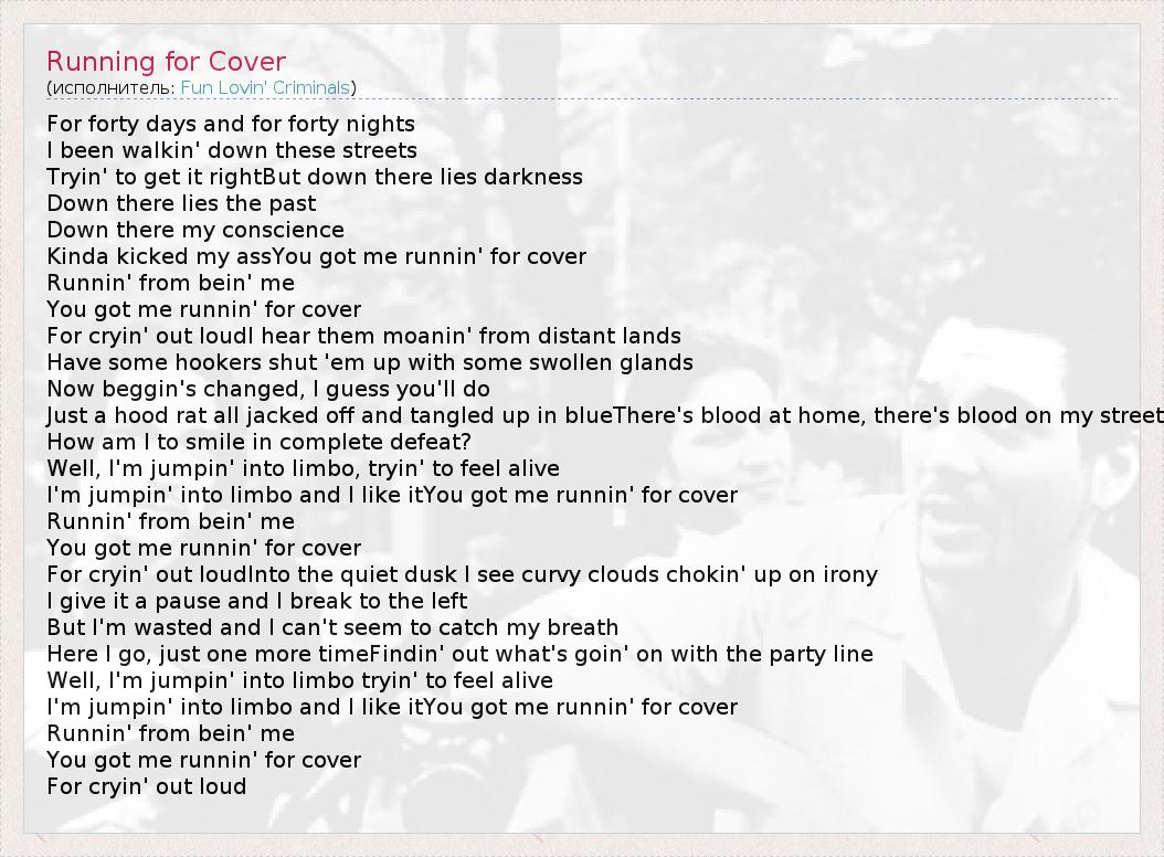 А как ты думаешь, о чем песня "Running for Cover" ?