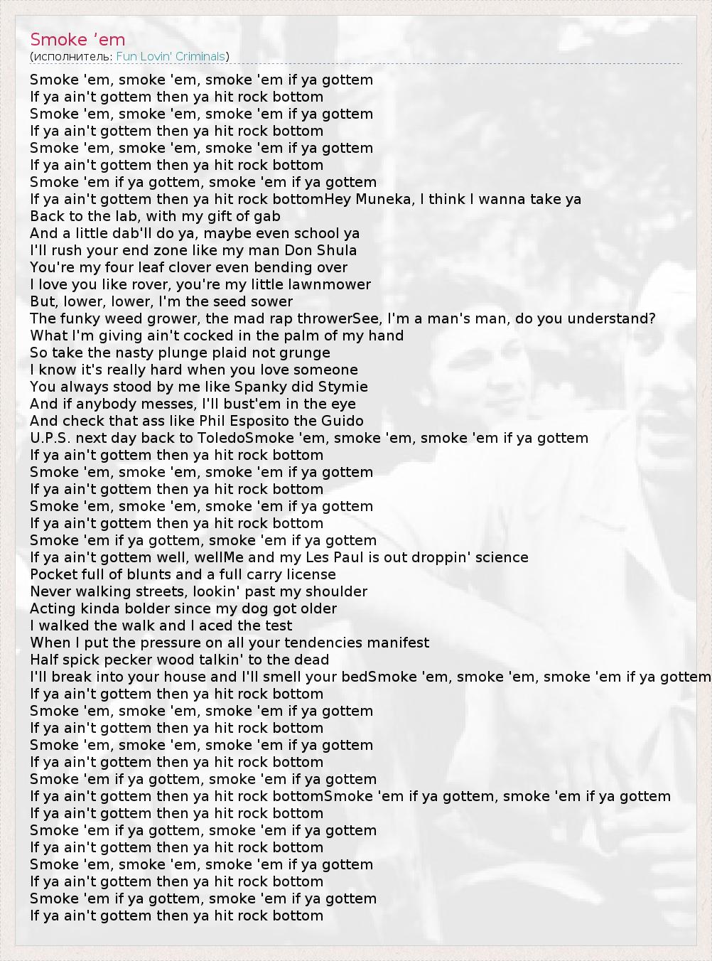 А как ты думаешь, о чем песня "Smoke ’em" ?