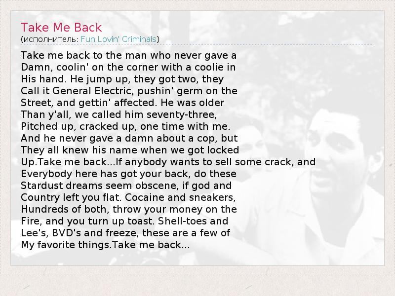 А как ты думаешь, о чем песня "Take Me Back" ?