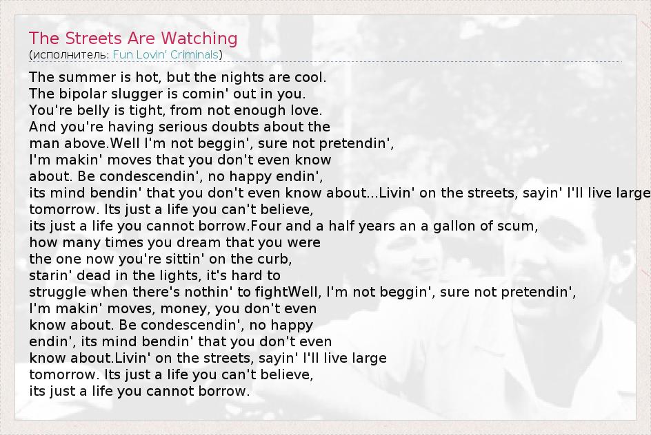 А как ты думаешь, о чем песня "The Streets Are Watching" ?