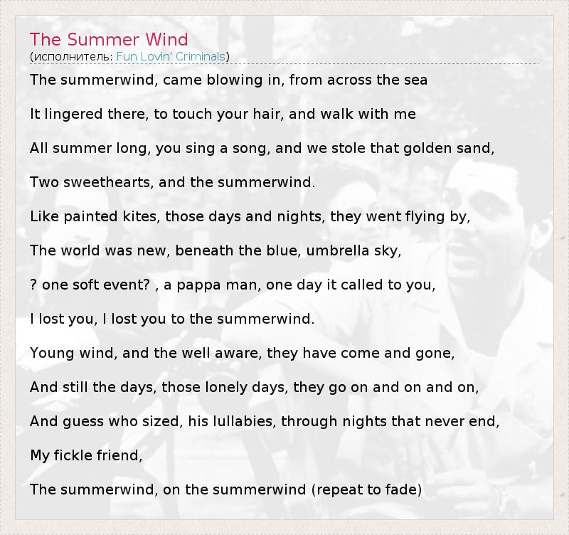А как ты думаешь, о чем песня "The Summer Wind" ?