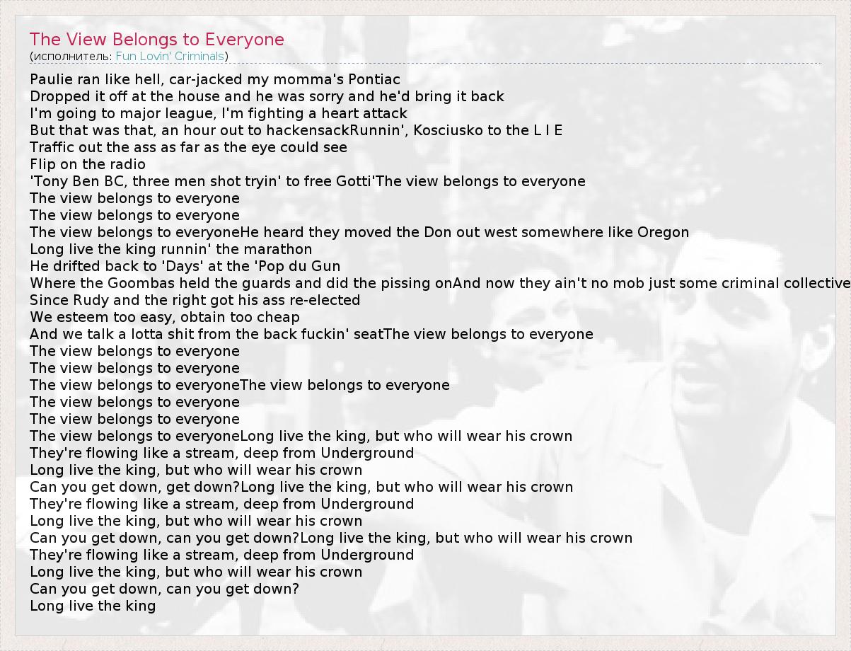 А как ты думаешь, о чем песня "The View Belongs to Everyone" ?