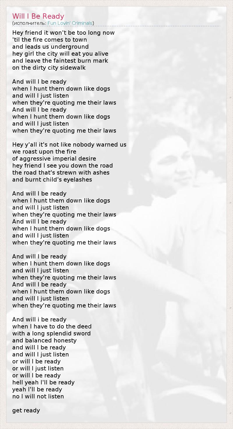 А как ты думаешь, о чем песня "Will I Be Ready" ?