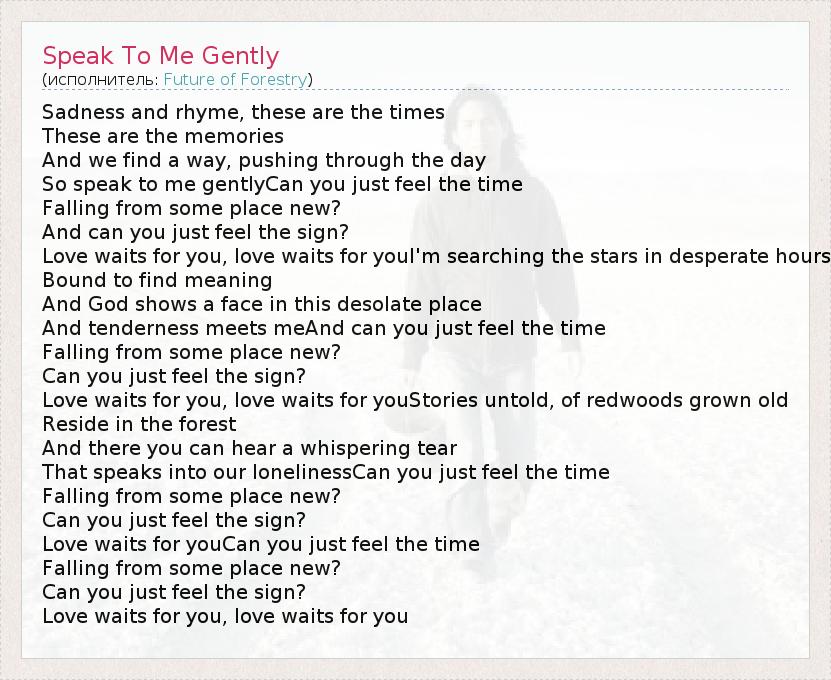 А как ты думаешь, о чем песня "Speak To Me Gently" ?