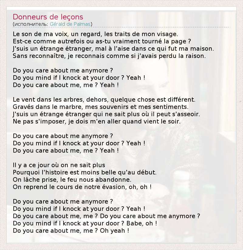 А как ты думаешь, о чем песня "Donneurs de leçons" ?
