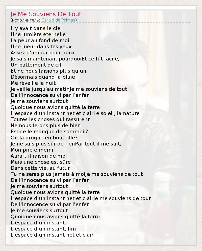 А как ты думаешь, о чем песня "Je Me Souviens De Tout" ?