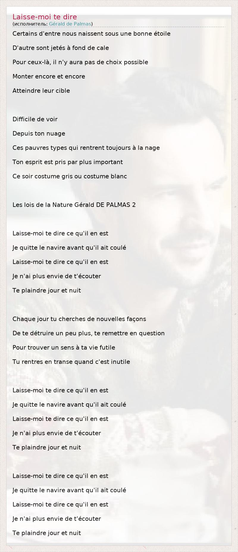 А как ты думаешь, о чем песня "Laisse-moi te dire" ?