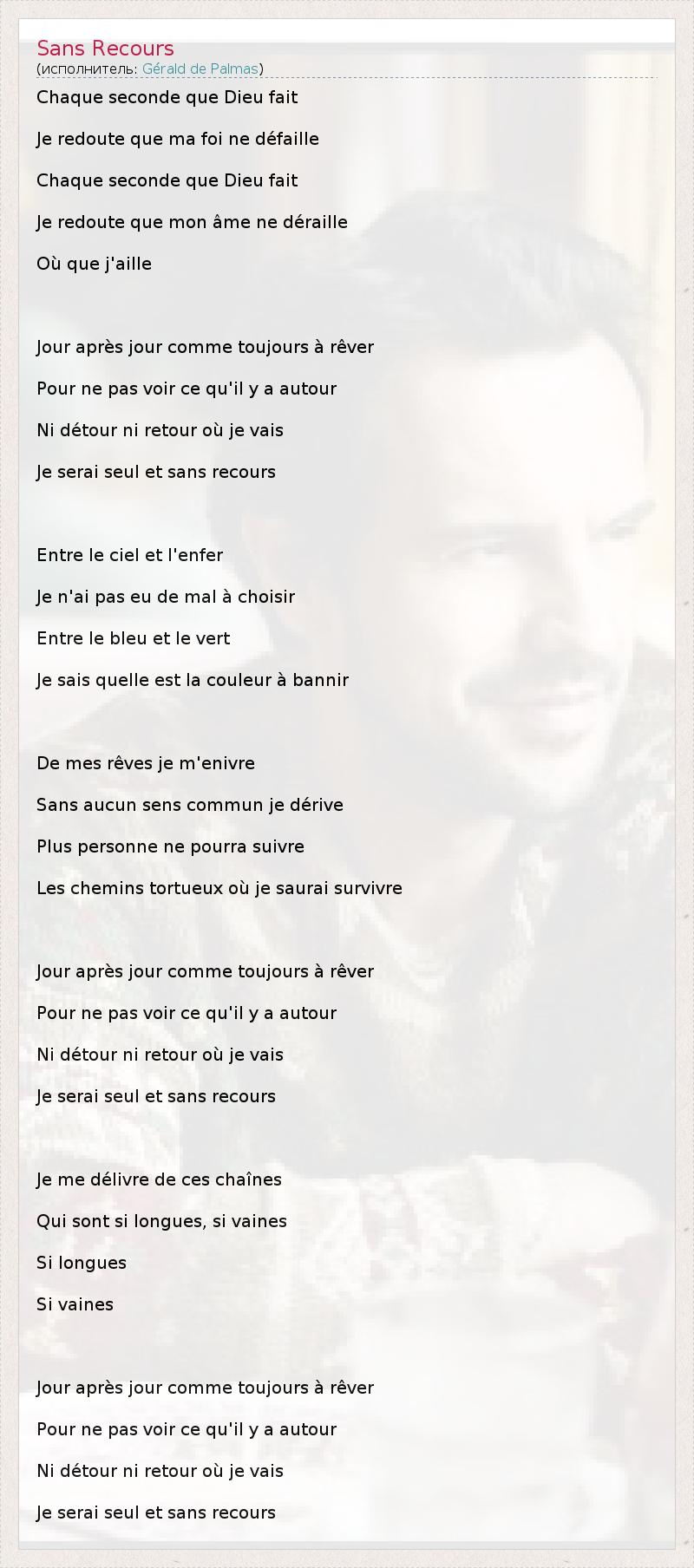 А как ты думаешь, о чем песня "Sans Recours" ?