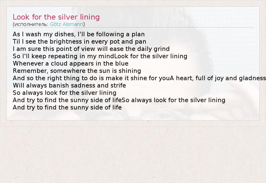А как ты думаешь, о чем песня "Look for the silver lining" ?