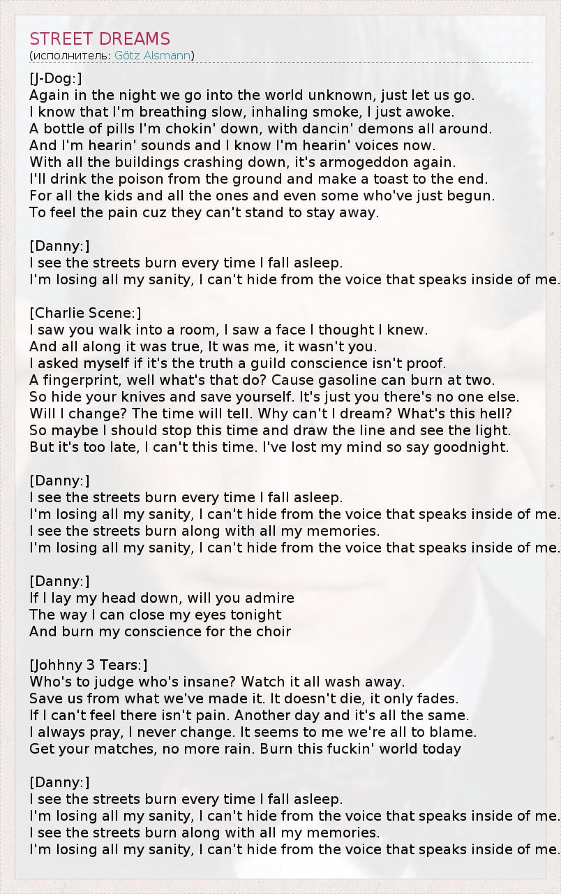 А как ты думаешь, о чем песня "STREET DREAMS" ?