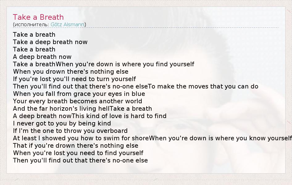 А как ты думаешь, о чем песня "Take a Breath" ?