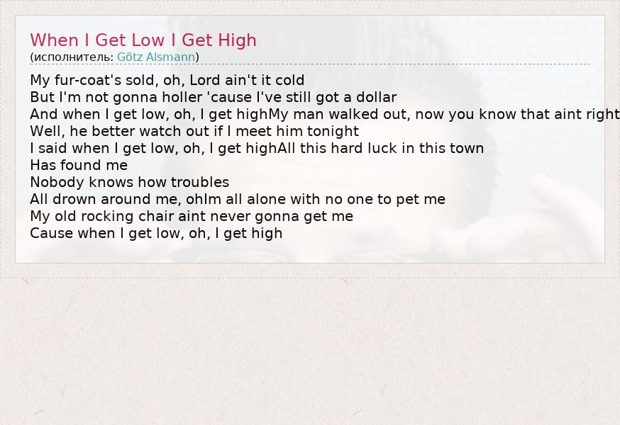 ГлавнаяИсполнителиGötz AlsmannWhen I Get Low I Get High