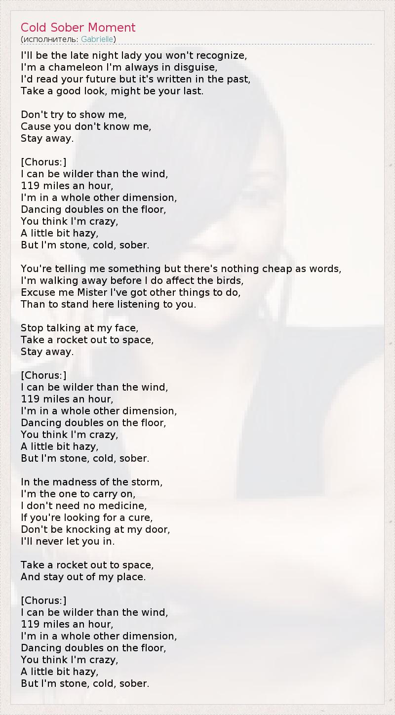А как ты думаешь, о чем песня "Cold Sober Moment" ?