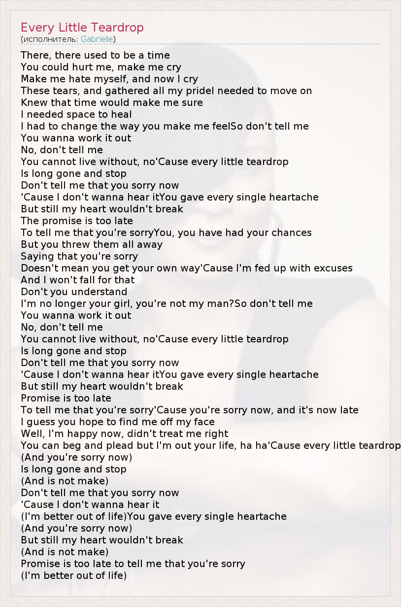 А как ты думаешь, о чем песня "Every Little Teardrop" ?