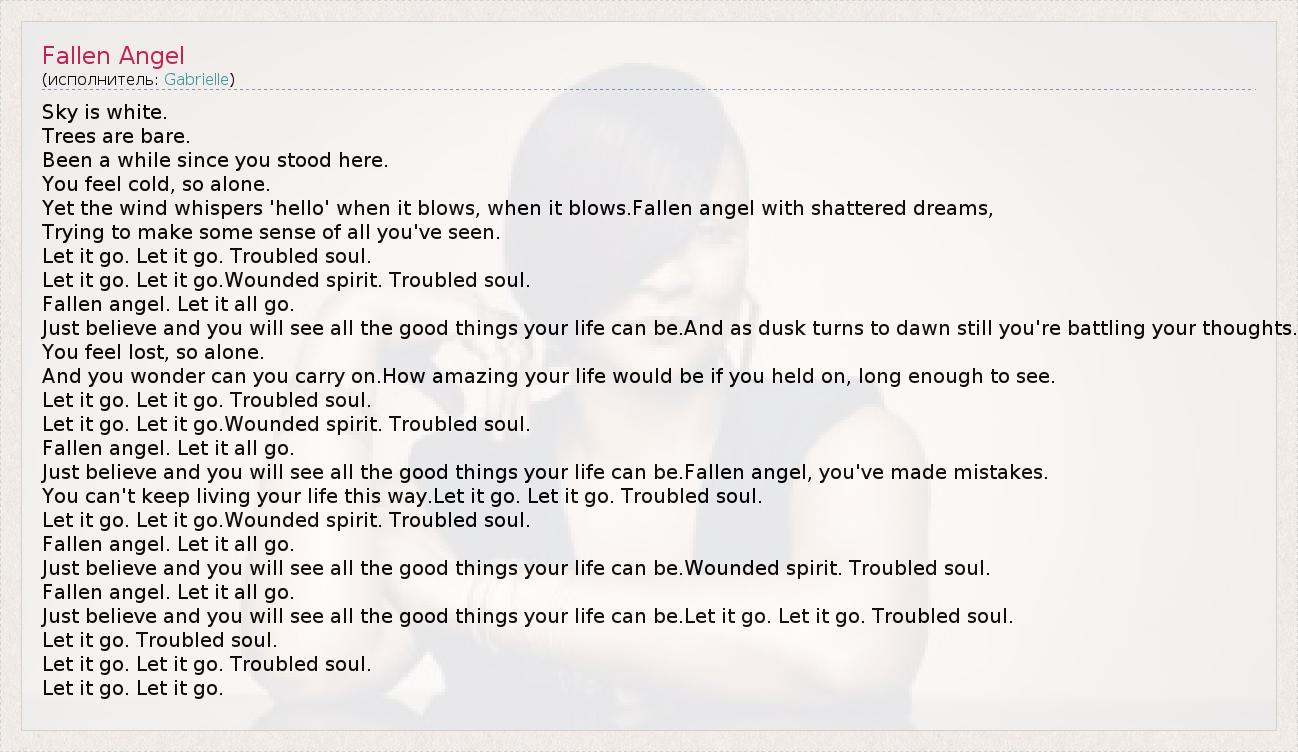 А как ты думаешь, о чем песня "Fallen Angel" ?