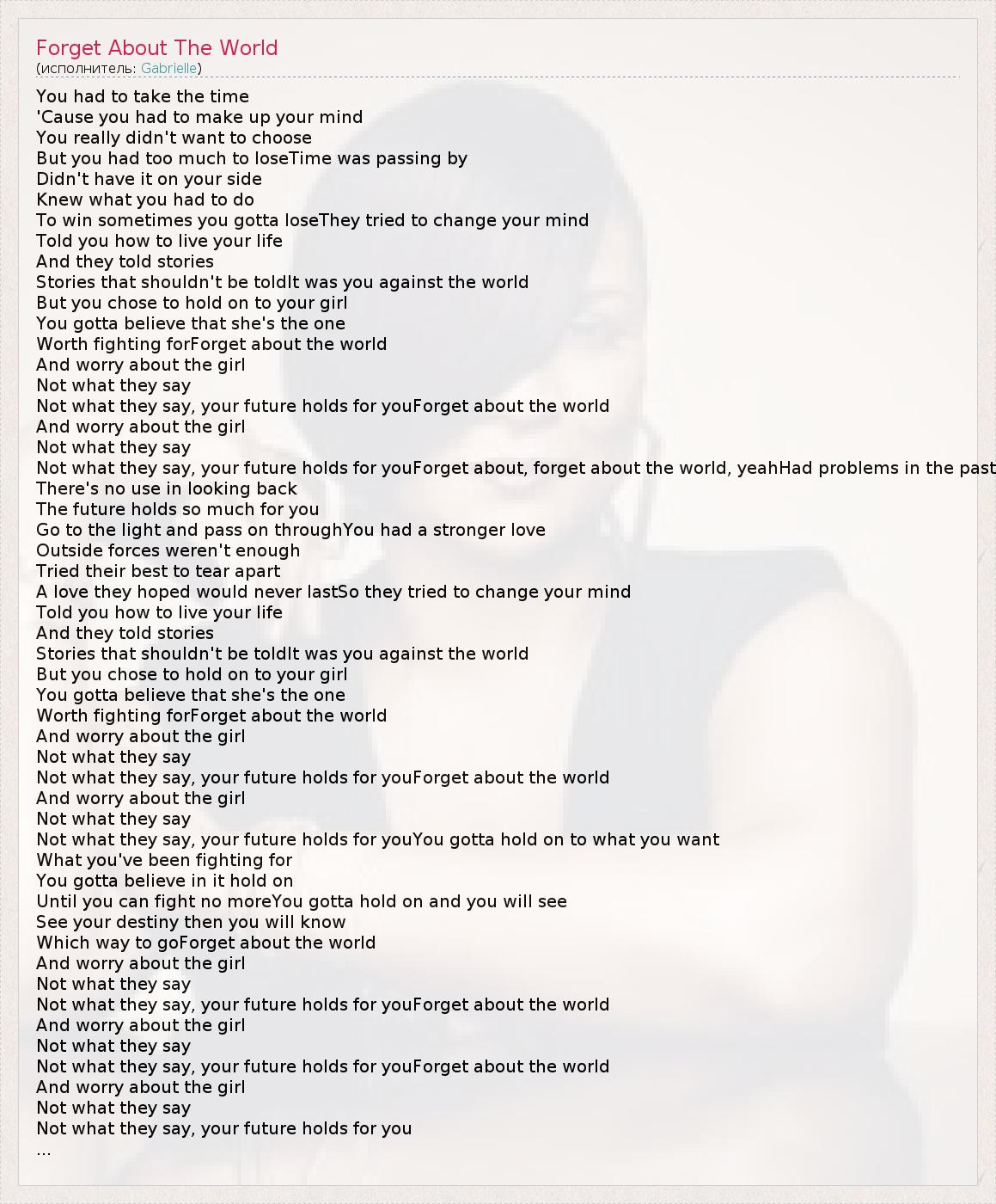 А как ты думаешь, о чем песня "Forget About The World" ?
