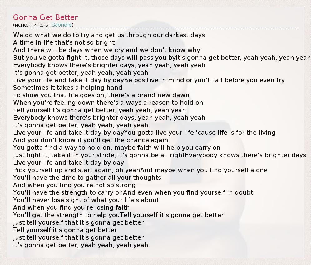 It's gonna get better, yeah yeah, yeah yeah