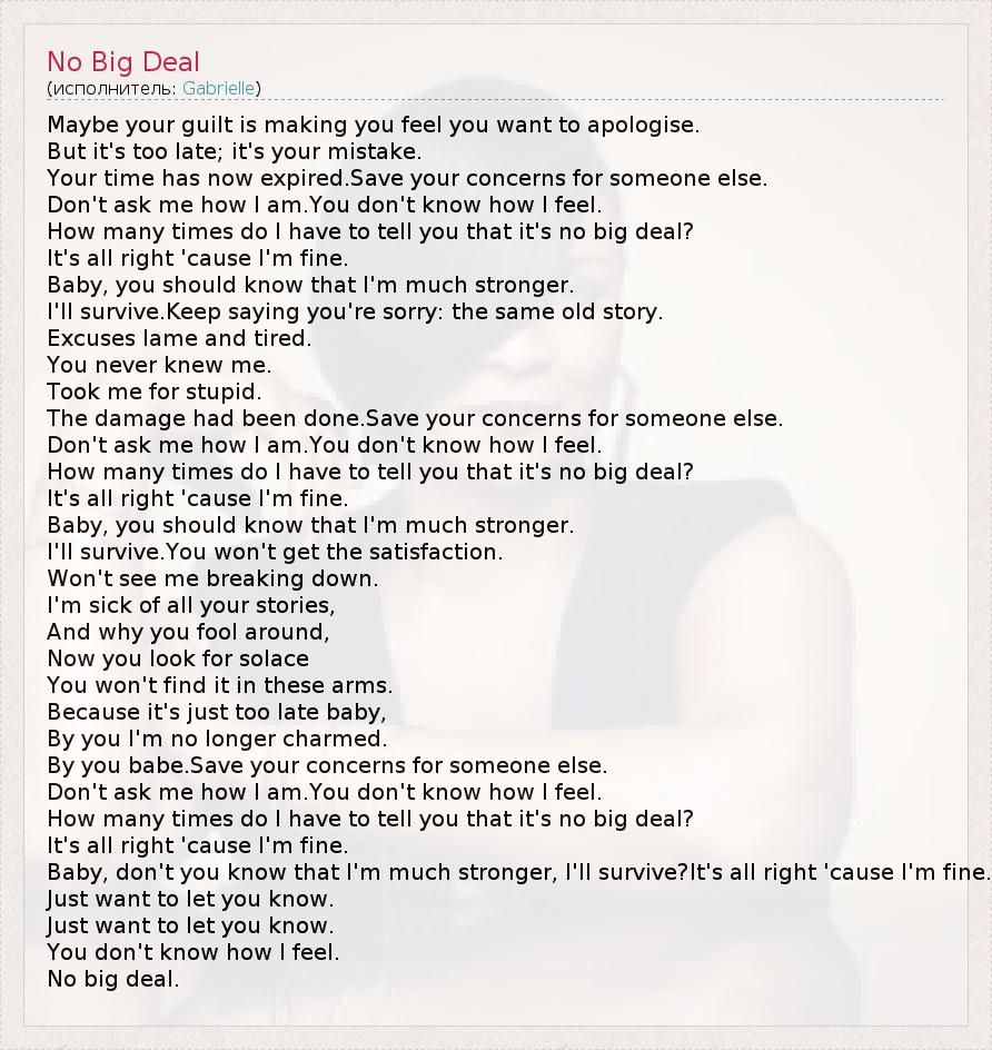 А как ты думаешь, о чем песня "No Big Deal" ?